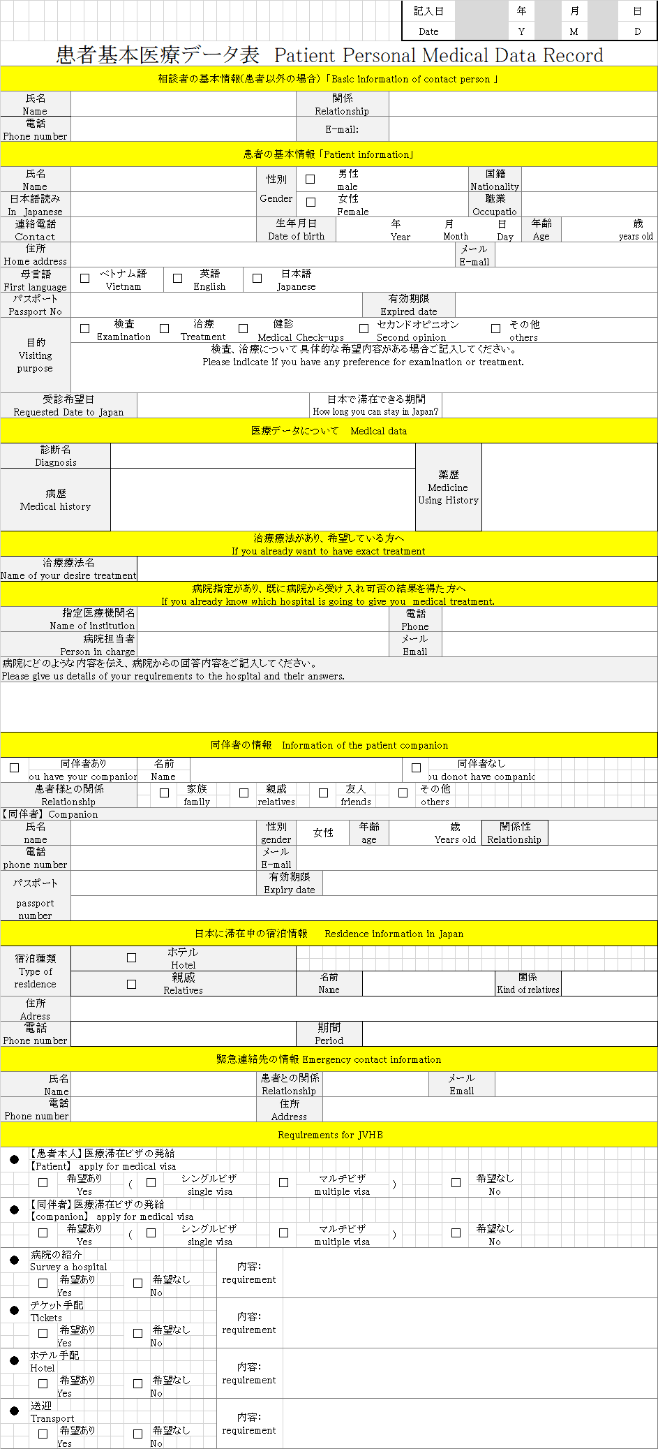 JVHB Mẫu khai thông tin Mẫu khai thông tin. khám chữa bệnh tại Nhật Bản, Tầm soát ung thư tại Nhật Bản, Điều trị ung thư tại Nhật Bản.